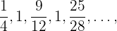 Elevamos cada termino al cuadrado para poder visualizar la progresión de una forma mas simple: