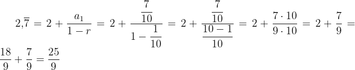 Calcula la fracción generatriz del número decimal periódico exacto mediante la suma de una progresión geométrica: