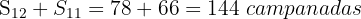 Nota: Aunque en principio habrías podido pensar que había que calcular la suma de los 24 primeros términos, ten en cuenta que las horas que se dan son analógicas, con lo que tras las 12 del medio día no se darían 13 campanadas sino 1 para marcar las 13:00 h, no se darían 14 campanadas sino 2 para marcar las 14:00 h y así sucesivamente. Además no contemplamos en la segunda vuelta los 12 primeros términos sino sólo los 11 primeros, porque el duodécimo ya correspondería a las 12 de la noche que se considera parte del día siguente.