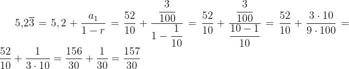 Calcula la fracción generatriz del número decimal periódico mixto mediante la suma de una progresión geométrica: