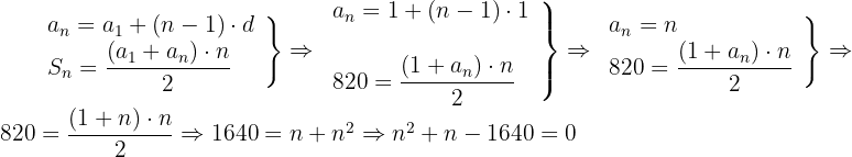Un coronel que está a cargo de un pelotón de 820 soldados, quiere formarlos en triángulo, de manera que la primera fila tenga 1 soldado, la segunda 2, la tercera 3 y así sucesivamente. ¿Cuántas filas se formarán?