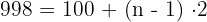 Además la cantidad de números pares de tres cifras es la cantidad de números pares que hay entre 100 y 998. Calculemos dicha cantidad: