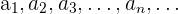 Una sucesión es un conjunto ordenado de números llamados términos, que se designan con una letra y un subíndice que se corresponde con el lugar que ocupan. Generalmente se denotan de la siguiente forma,
