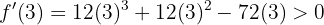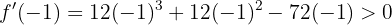 4 Tomamos un valor de cada intervalo (puedes tomar cualquier valor en el intervalo) y hallamos el signo que tiene en la derivada primera