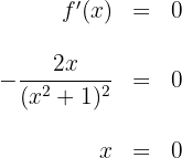 en los números reales que satisfagan la ecuación anterior, por tanto la derivada primera no posee raíces. Observamos que la función y su derivada poseen una discontinuidad en