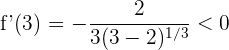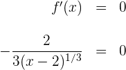 no existen valores de en los números reales que satisfagan la ecuación anterior, por tanto la derivada primera no posee raíces. Observamos que la derivada no existe en