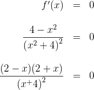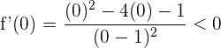 aplicando la fórmula general de grado 2 al numerador se tiene que la ecuación anterior se anula en . Observamos que la función y su derivada poseen una discontinuidad en