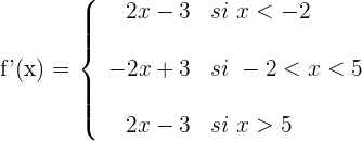 como las derivadas laterales no coinciden, entonces la derivada no existe. De igual manera realizamos el cálculo para