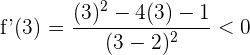 3 Formamos intervalos abiertos con la discontinuidad, en este caso no existen ceros de la derivada. Nos apoyamos con la representación de los puntos en la recta real