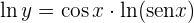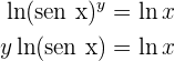 tomamos logaritmo natural por ambos lados y utilizamos la propiedad del logaritmo de una potencia