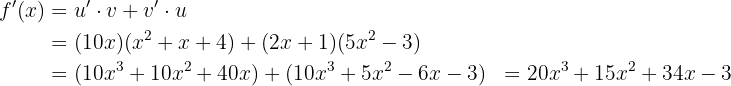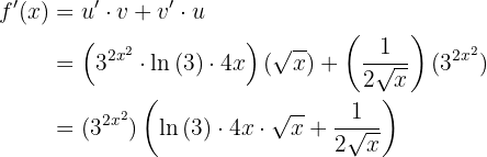 , sustituimos en la fórmula de la derivada del producto de funciones para obtener