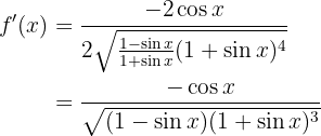 Notemos que el radicando es una función más complicada que las anteriores. Por este motivo, conviene utilizar la fórmula directamente pero derivar aparte la función