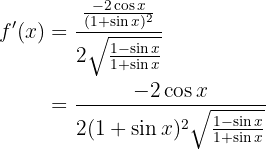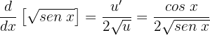 que es exactamente el mismo resultado que habíamos obtenido previamente. Aquí podemos observar que es más rápido derivar si nos aprendemos la fórmula de la derivada de una raíz