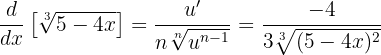 Al igual que en el caso anterior, conviene primero derivar al argumento de la raiz: