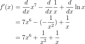 me pueden ayudar encontrar la derivada de : y=7 elevado a la 4 + e elevado a la x-4 – ln X + 100