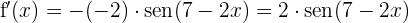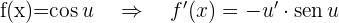 La derivada del coseno de una función es igual a menos el seno de la función por la derivada de la función. En términos matemáticos