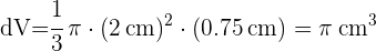 10¿En cuánto se incrementa el volumen de un cono con 4 cm de altura y 2 cm de radio si se mantiene su base constante y su altura se incrementa en 0.75 cm?
