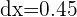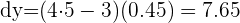 9¿En cuánto incrementa el valor de 'y' cuando el valor de 'x' incrementa en 0.45 unidades en la función