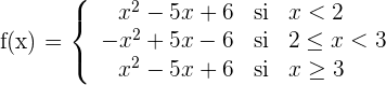 Podemos observar que en x = 2 y en x = 3 tenemos dos puntos angulosos, por lo que la función no será derivable en ellos.