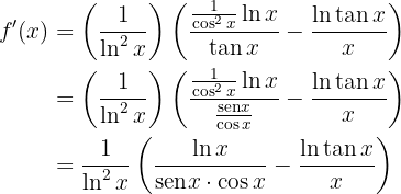 Calcula la derivada de la función logarítmica: