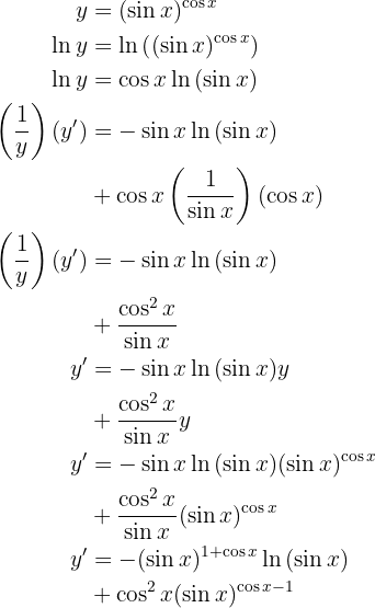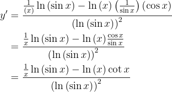 Derivas de funciones compuestas de logaritmos y trigonométricas
