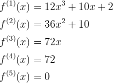 , por lo tanto, de la quinta derivada en adelante las derivadas serán siempre cero, esto es