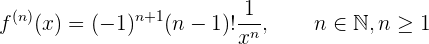 Notemos que la fórmula de la n-ésima derivada está dada por