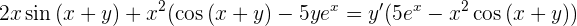 En los siguientes ejercicio derivaremos implícitamente. Esta derivación suele ocurrir cuando no podemos despejar a una variable en términos de otra, así que derivamos las variables en términos de la misma variable independiente, esto es, la derivada de