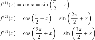 Notemos que con estas primeras derivadas se obtiene que la n-ésima derivada tiene la forma