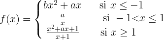 Determinar los valores de a y b para que la siguiente función sea derivable en todos sus puntos: