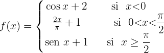 Como estos tres valores son iguales, la función es continua en 2, y con esto, es continua en todos los puntos.
