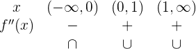 2 Formamos intervalos abiertos con los ceros (raíces) de la derivada segunda y los puntos de discontinuidad (si los hubiese).