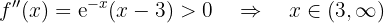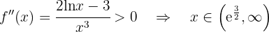 Primero notemos que el dominio de la función es .Ahora utilizaremos el criterio de concavidad-convexidad de la segunda derivada, el cual nos dice que la que función será convexa en los intervalos donde la segunda derivadasea positiva y será cóncava en los intervalos donde la segunda derivada sea negativa.