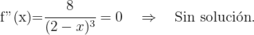 Ahora utilizaremos el criterio de concavidad-convexidad de la segunda derivada, el cualnos dice que la que función será convexa en los intervalos donde la segunda derivada
