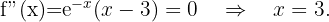 La primera derivada se anula en x = 3. Por lo tanto 3 es otro punto crítico de la función del ejemplo.