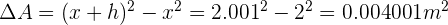 Calcular con diferenciales el incremento del área del cuadrado de 2m de lado, cuando aumentamos 1mm su lado.