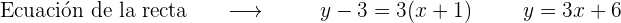 Y como la derivada nos da la pendiente de la recta tangente, la igualaremos a 3 pues es el valor que buscamos que tenga