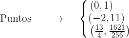 Para obtener la ordenada de los puntos sólo basta con sustituir el valor de