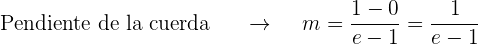 , la tangente es paralela a la cuerda que une los puntos (1, 0) y (e, 1)?
