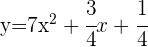 $$b^2-4ac=\left(\frac{3}{4}\right)^2-4(7)\left(\frac{1}{4}\right)=\frac{9}{16}-7=-\frac{103}{16}<0. $$ [/latex]Así, no se tiene puntos de corte.
