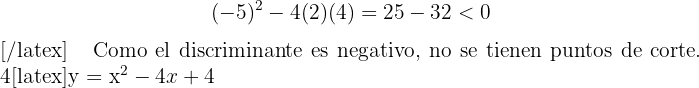 y a partir de su signo concluimos si las parábolas cortan 2 veces, 1 vez o ninguna vez al eje de las abscisas.