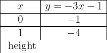 Representa la siguiente función, sabiendo que tiene pendiente −3 y ordenada en el origen −1
