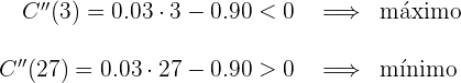 La segunda derivada siempre es negativa, por lo que y se tiene un máximo