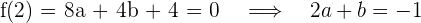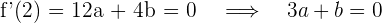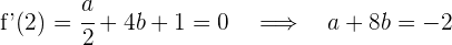 2 Como la función tiene un punto de inflexión en , entonces la derivada es cero en este punto. Sustituimos y obtenemos