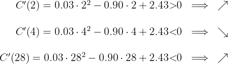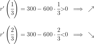 Tomamos un valor de cada intervalo, y hallamos el signo que tiene en la derivada primera: