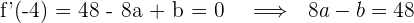 , entonces la derivada es cero en estos puntos. Sustituimos y obtenemos dos ecuaciones