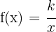 Dentro de este tipo tenemos las funciones de proporcionalidad inversa de ecuación: