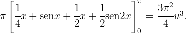 Calcular el volumen engendrado por una semionda de la sinusoide al girar alrededor del eje