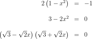 son las coordenadas de las abcisas donde se intersectan las dos curvas