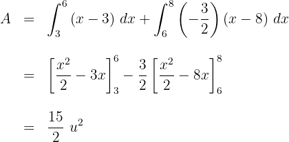 Hallar el área limitada por las rectas y el eje de abscisas.